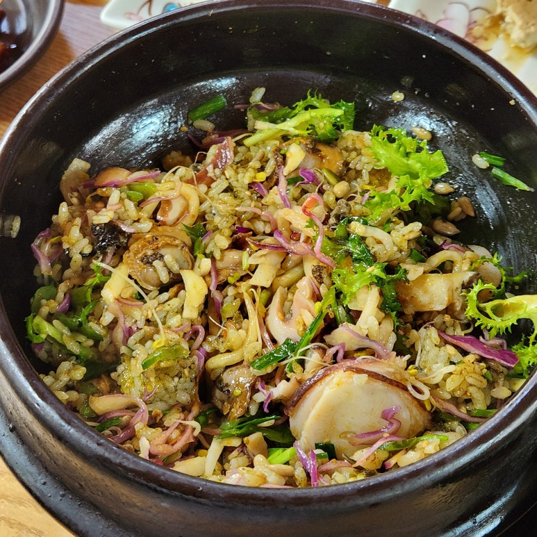 돌솥에 담긴 밥, 그 위에는 단순히 꼬막만 있는 게 아니었다.