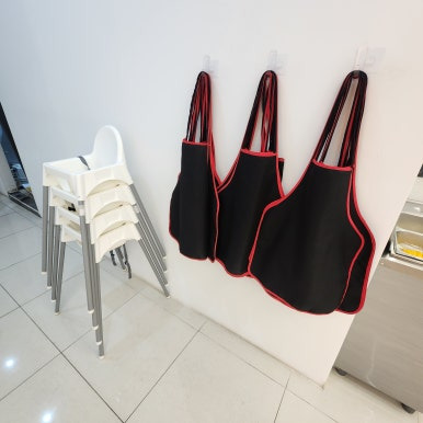 게다가 유아 전용 의자와 앞치마까지 준비되어 있어서,