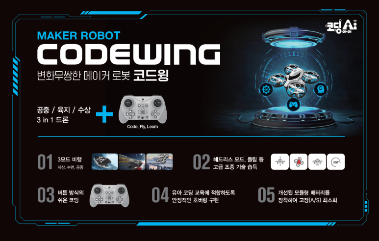 3-in-1 수륙양용 코딩 드론 ‘코드윙(Code Wing)' 완전 반해버렸어요ㅠㅠ