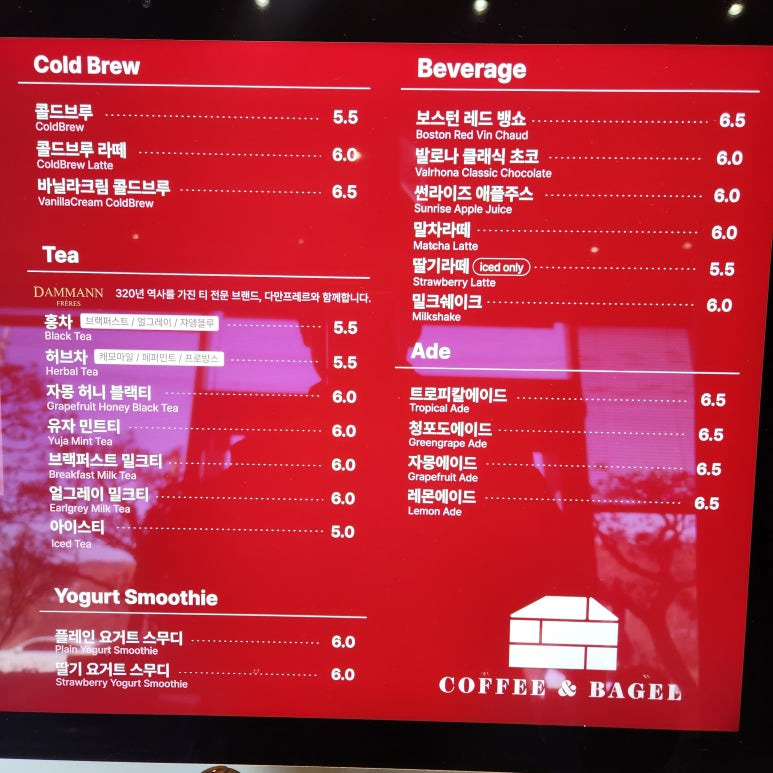 대형 베이글 전문점이라길래 비쌀 줄 알았는데 기본 플레인 베이글 3,800원부터 시작;; 프리미엄 카페에서 이 가격이면 진짜 양심 있는 수준. 저는 크림치즈 바르고 나온 세트로 먹었는데 겉바속챙에 커피랑 너무 잘 어울려서 하나 더 시킬 뻔했어요.