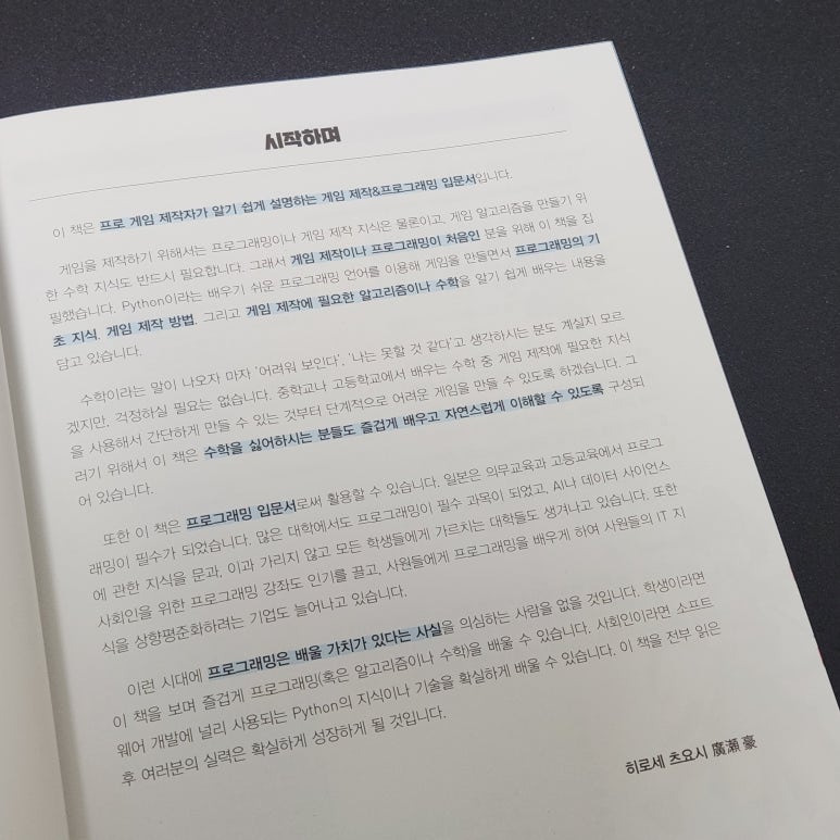 그런 편견을 완전히 깨준 책이 바로 '파이썬만으로 시작하는 1인 게임개발'입니다.