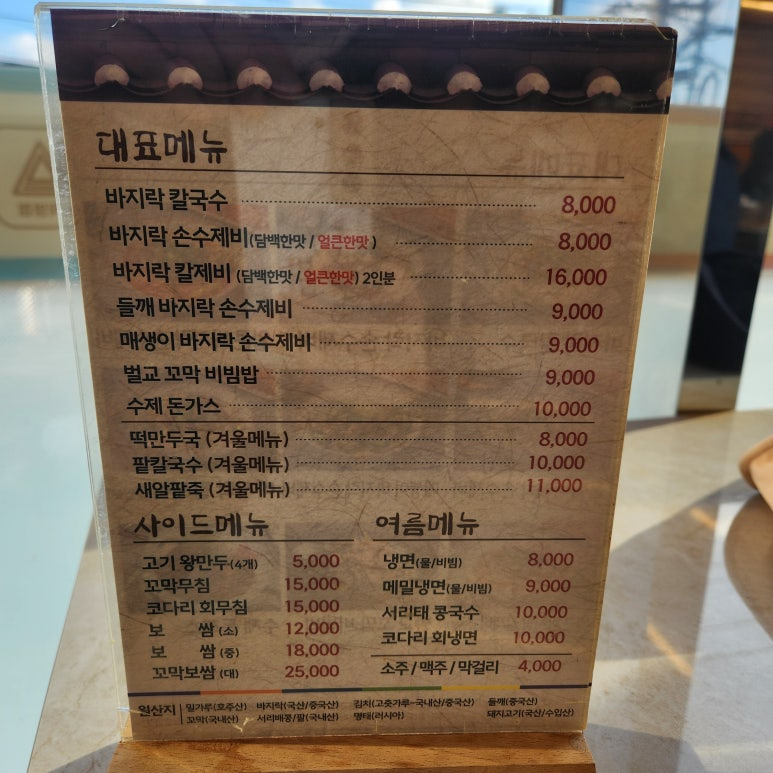 대표 메뉴는 단연 바지락 칼국수 (8,000원)!