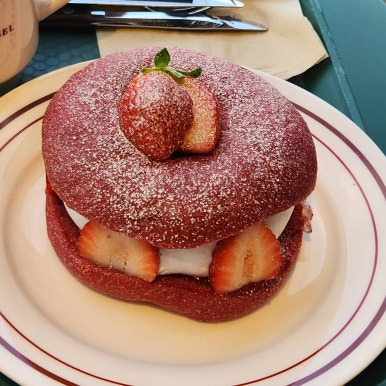 이날 주문한 건 치즈감자 베이글과 딸기&크림 베이글!