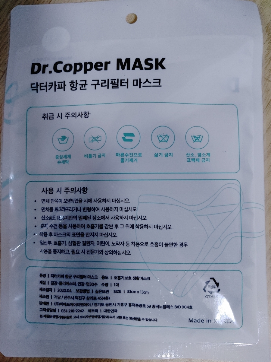 닥터카파 항균 구리필터 마스크가 있어요.