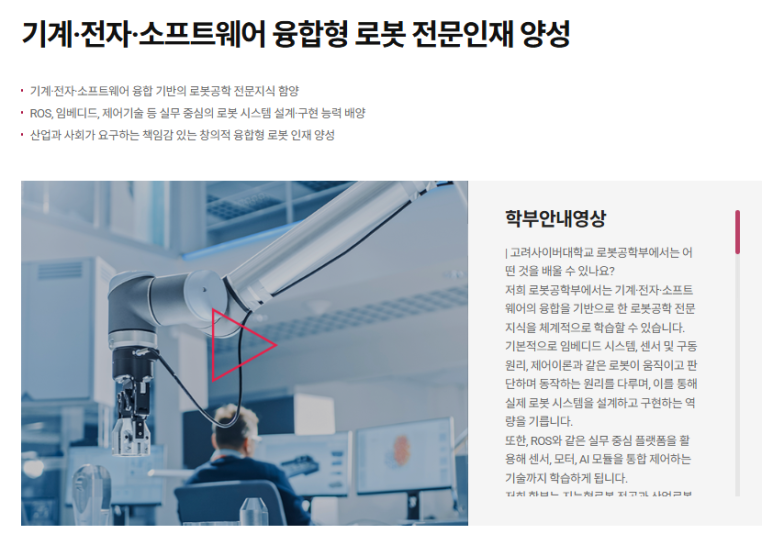 국내 사이버대학교 최초 로봇 특화 학부: 고려사이버대학교 로봇공학부 신설 소식