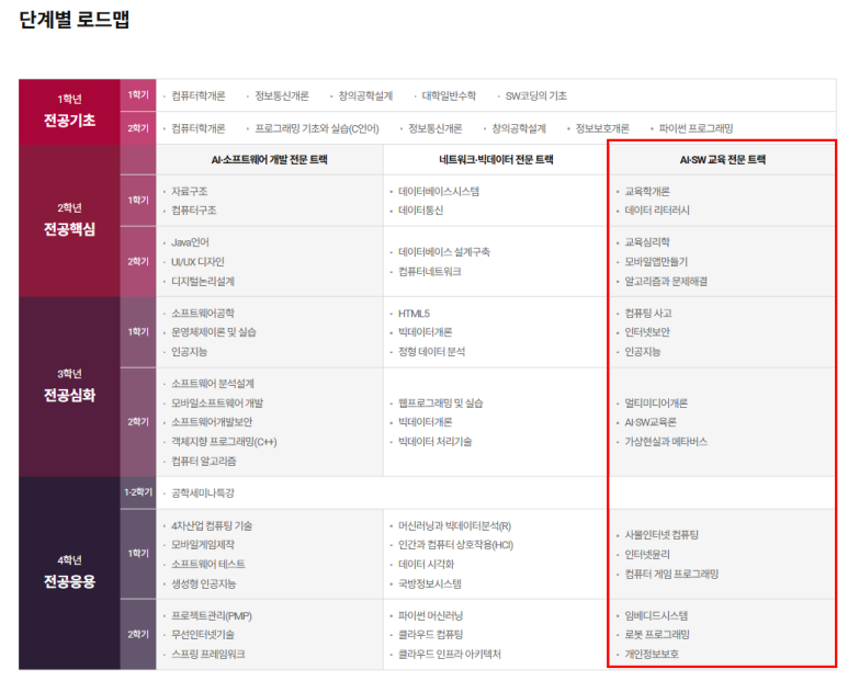 - 졸업 후 진로: 초중등 코딩/AI 교사, SW 전문 강사 등.
