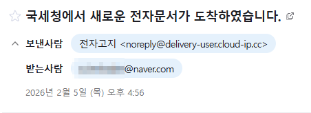 정상적인 국세청 전자고지는 홈택스나 공식 메일 시스템을 통해 오고, 네이버가 중간에 관여하지 않습니다.