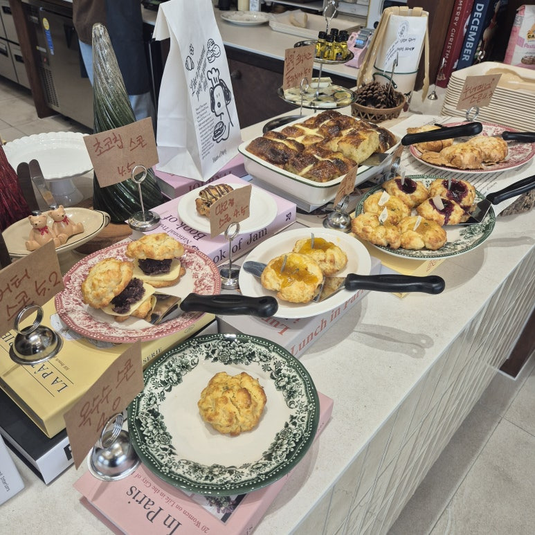 가성비로는 브런치 세트가 제일 좋았고, 빵 종류는 많지 않지만 주로 스콘 위주로 준비되어 있어요.