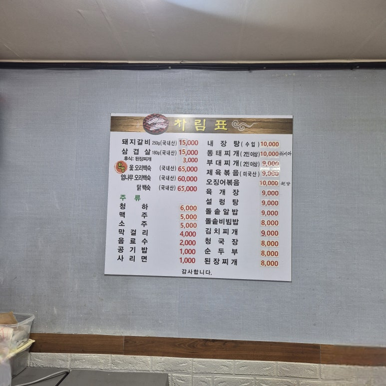 그리고 가게 이름처럼 돼지갈비랑 한방오리도 메인 메뉴로 있어서 다음엔 꼭 도전해보려고요.