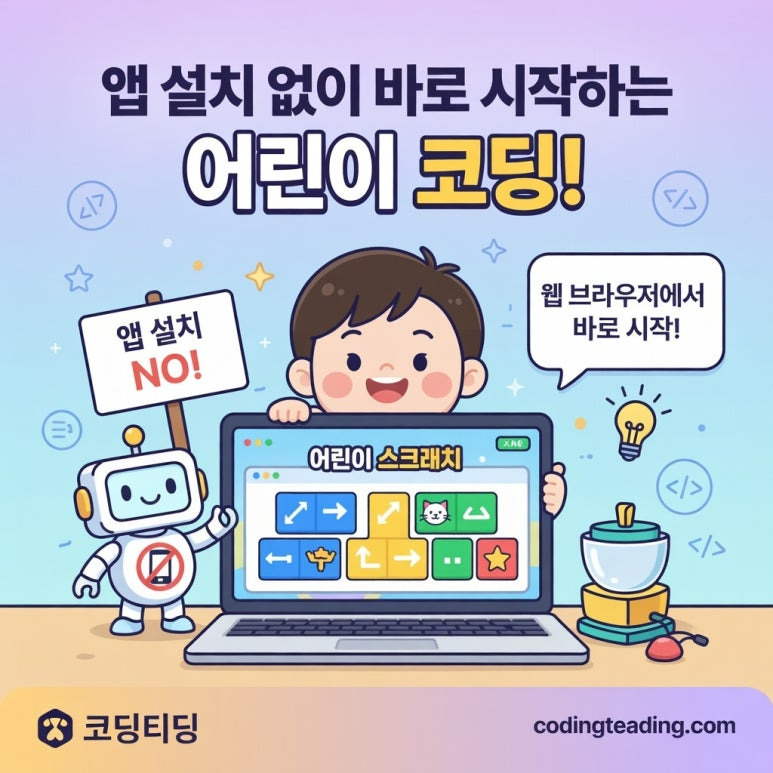 우리 아이 코딩 교육을 시작하고 싶은데, 낯선 앱 설치부터 막막하셨나요? 코딩티딩의 어린이 스크래치라면 그 고민이 한 번에 해결됩니다.