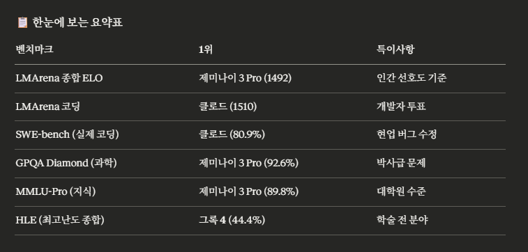 (아래 표는 제 주관이 아닌 실제 벤치마크 점수입니다)