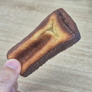 오픈 준비 중인 트레이 위에 빼곡하게 줄지어 있는 모습부터 심상치 않다. 직사각형 틀에 구워낸 묵직한 형태로, 겉은 짙은 갈색으로 바삭하게 구워졌고 안쪽은 부드러운 버터 크림이 가득하다.