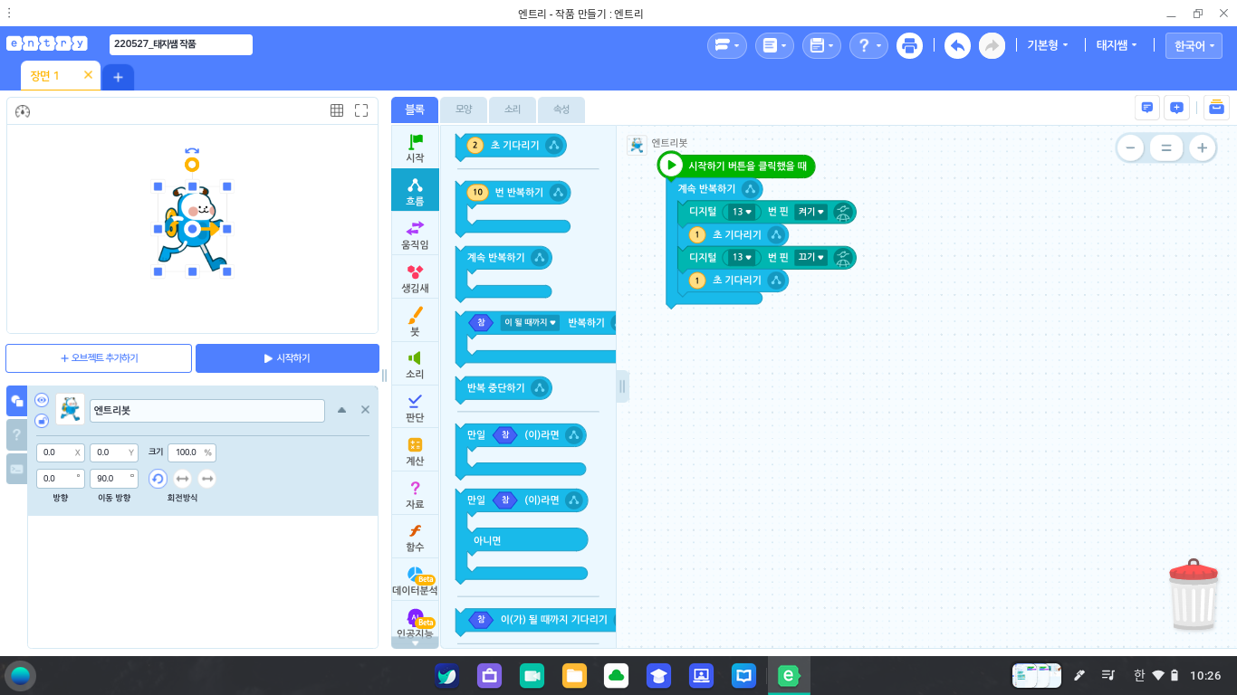 [웨일북 X 아두이노] 엔트리로 아두이노 기본 LED 코딩