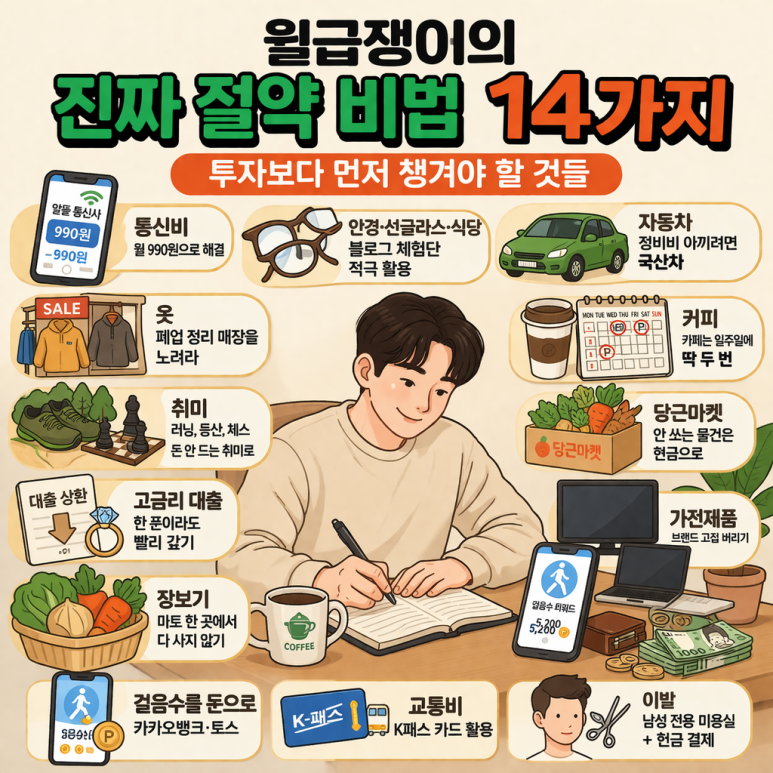월급쟁이의 진짜 절약 비법 14가지 — 투자보다 먼저 챙겨야 할 것들