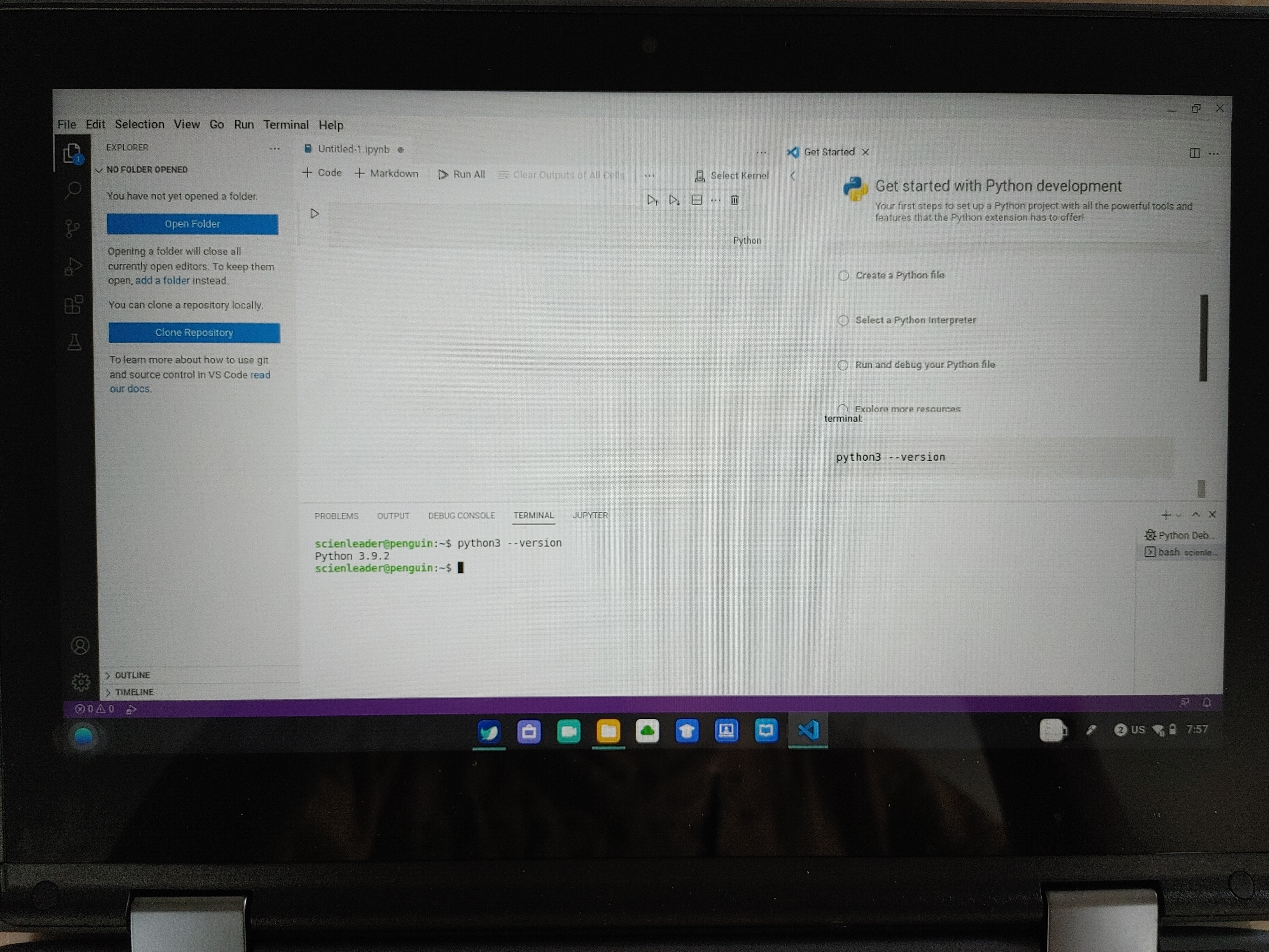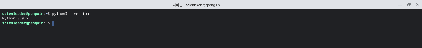 터미널 실행 후 파이썬 버전도 확인해봤어요.