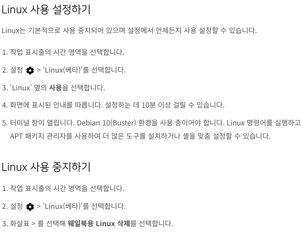 다른 방법으로는 리눅스 사용 설정하는거에요.