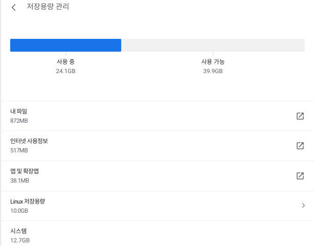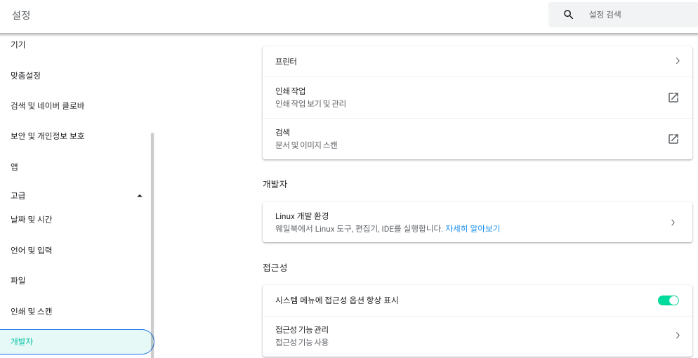 아래 설명과 같이 설정에서 리눅스(베타)를 선택 후