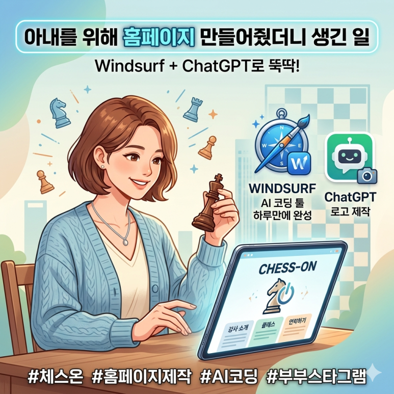 #체스온 #chesson #체스강사 #홈페이지제작 #Windsurf #AI코딩 #챗GPT로고 #1인사업자홈페이지 #AI활용 #부업 #사이드프로젝트 #깃허브페이지 #무료홈페이지 #프리랜서홈페이지 #AI툴추천