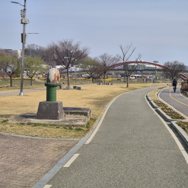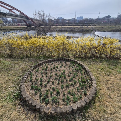 오산천은 요즘 봄 맞이 준비 한창이다. 산책로 따라 개나리가 노랗게 피어나고 있고, 하천변 꽃밭에는 빨간 아치교를 배경으로 튤립 새싹도 올라오고 있었다. 매화꽃인지 자두꽃인지 하얀 꽃도 흐드러지게 피어 있었고, 흙 위에 작은 양귀비꽃도 수줍게 얼굴을 내밀고 있었다. 벚꽃까지 만개하면 오산천이 얼마나 예뻐질지 기대된다.