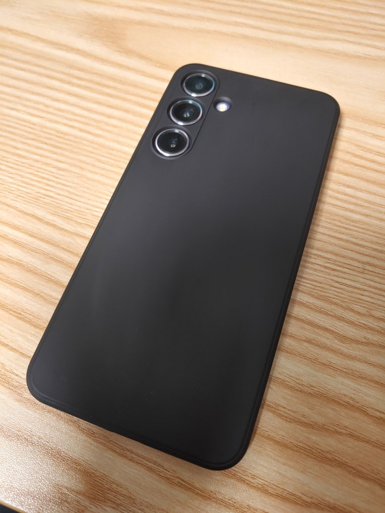 구입한 색상은 퍼플인데, 솔직히 내 취향은 아니었다. 중고 특성상 색상 선택의 여지가 없었던 것도 있고. 그래서 바로 블랙 무광 케이스를 구입했다. 결과적으로 마치 처음부터 블랙 모델인 것처럼 딱 원하는 분위기가 됐다. 사진에서 볼 수 있듯 무광 블랙은 군더더기 없이 깔끔하고, 카메라 구멍도 정확히 맞게 뚫려 있어서 만족스럽다.