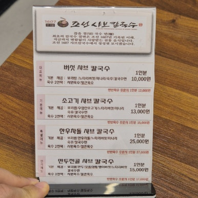 - 한우차돌 샤브 칼국수 25,000원