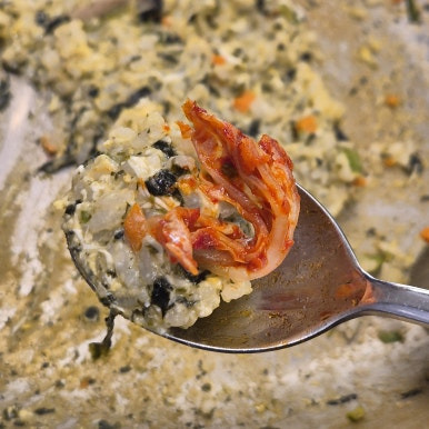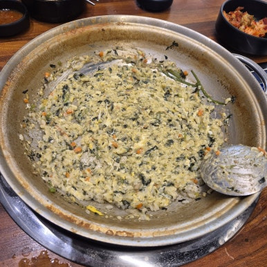 식사의 피날레는 야채죽이다. 남은 국물에 밥을 넣고 계란을 풀어 볶아 먹는 방식인데, 이게 또 별미다. 처음엔 죽처럼 끓이다가 계속 볶으면 고슬고슬한 볶음밥처럼 변해가는데, 여기에 김치를 얹어 한 숟가락 먹으면 마무리가 완벽하다.