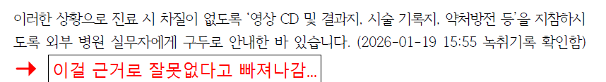 이건 단순한 실수라기보다 "귀찮은 일은 외부 병원과 환자가 알아서 해라"는 식의 무책임한 행정 편의주의의 끝판왕이라고 볼 수밖에 없습니다.