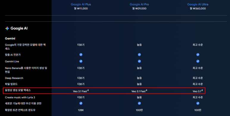 - 동영상 생성 (Veo) – 무료 계정에선 완전히 막혀 있던 기능. 유료 전환 후 텍스트 프롬프트로 짧은 영상 클립 생성 가능