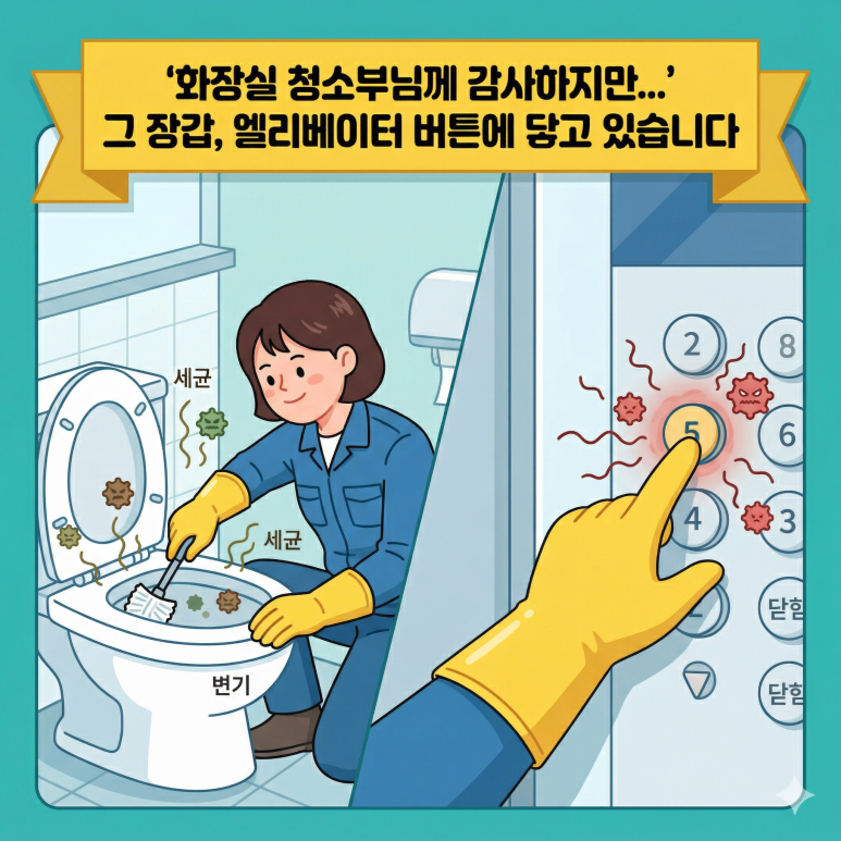 화장실 청소부님께 감사하지만... 그 장갑, 엘리베이터 버튼에 닿고 있습니다