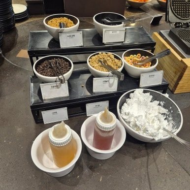 디저트도 요거트, 아이스크림, 탄산음료, 케잌, 커피, 수제 와플까지 종류가 다양해서 진짜 마지막까지 알차게 먹을 수 있었음. 애피타이저로 가져온 호박죽도 너무 달지 않고 부드러워서 2번이나 가져다 먹었다ㅋㅋ