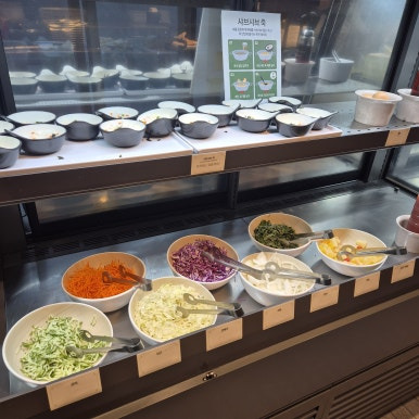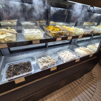 육수 종류도 미나리 소고기 육수, 얼큰 육수, 마라 육수, 곤포 가쓰오 육수, 야채 버섯 육수까지 다양하고, 좌석도 가나다라 섹터별로 구분된 넓은 홀이라 가족끼리 넉넉하게 앉기 좋다. 아이부터 어르신까지 누구나 취향에 맞게 즐길 수 있는 구성이라 가족 외식 장소로 진짜 최고인 것 같다.