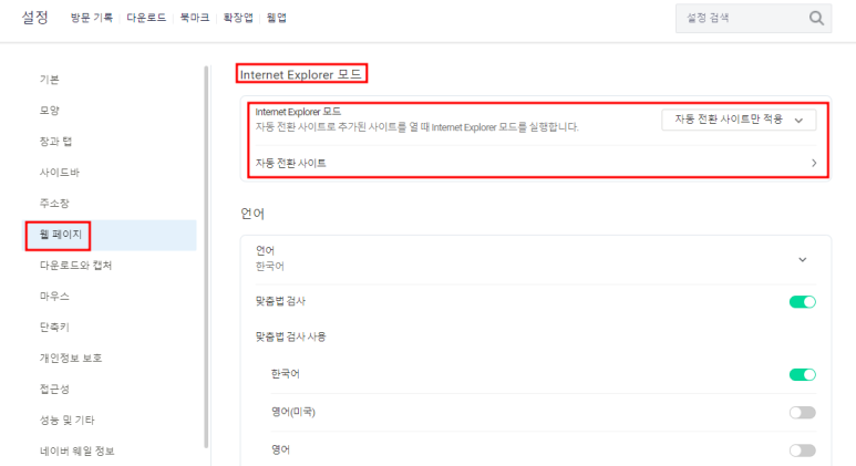 웨일 브라우저의 Internet Explorer 모드(이하 IE 모드)는
