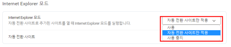 그 외 사이트에서는 수동으로 IE 모드를 실행할 수 없습니다.