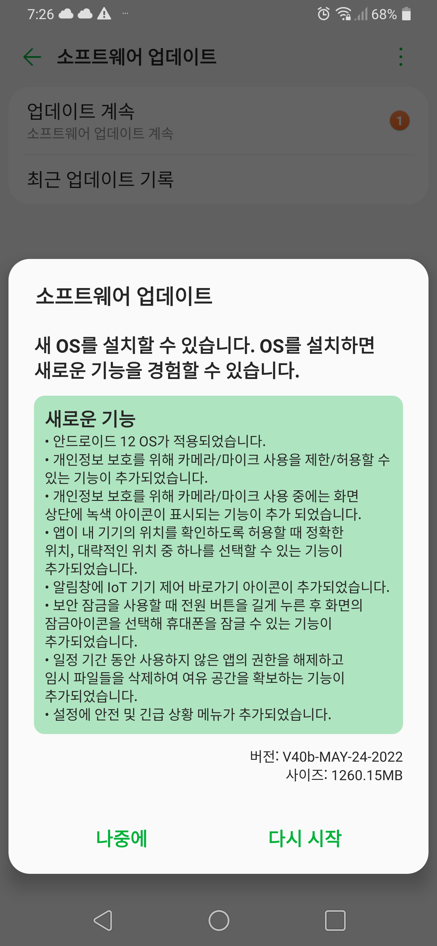 화면 상단에 녹색 아이콘이 표시되는 기능 추가