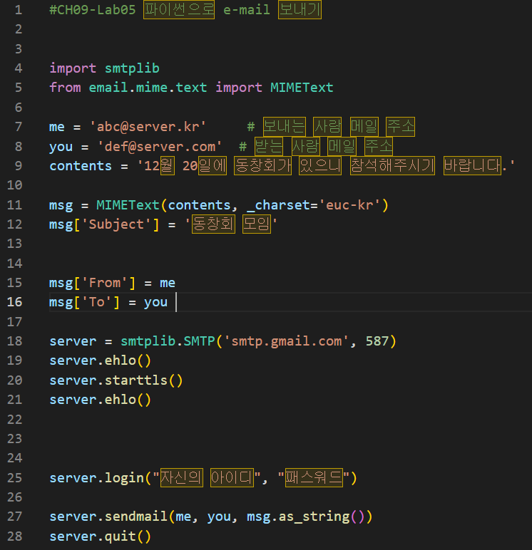 #CH09-Lab05 파이썬으로 e-mail 보내기