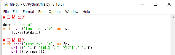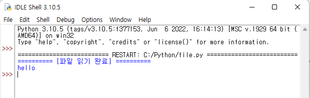 또한 파일 읽기를 통해 아래와 같이 IDLE 창에 찍혀있다.