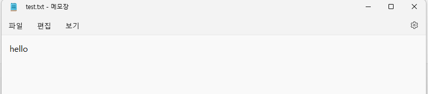 작업 폴더에 test.txt 파일이 생겼고, 파일을 열어보면