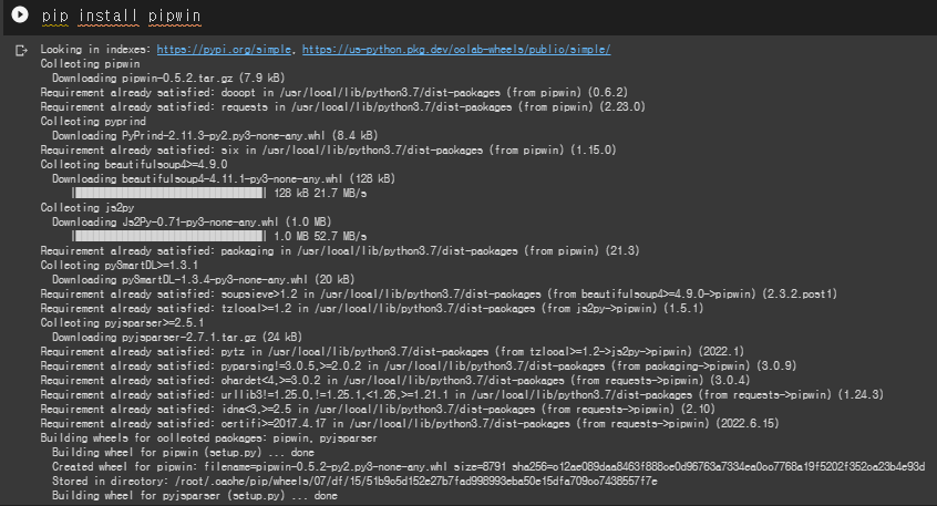 pipwin까지는 구글 코랩에서 정상적으로 설치됨