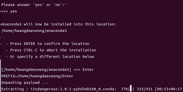 sh 명령어 뒤에 앞에서 복사한 링크에서 파일명만 남김