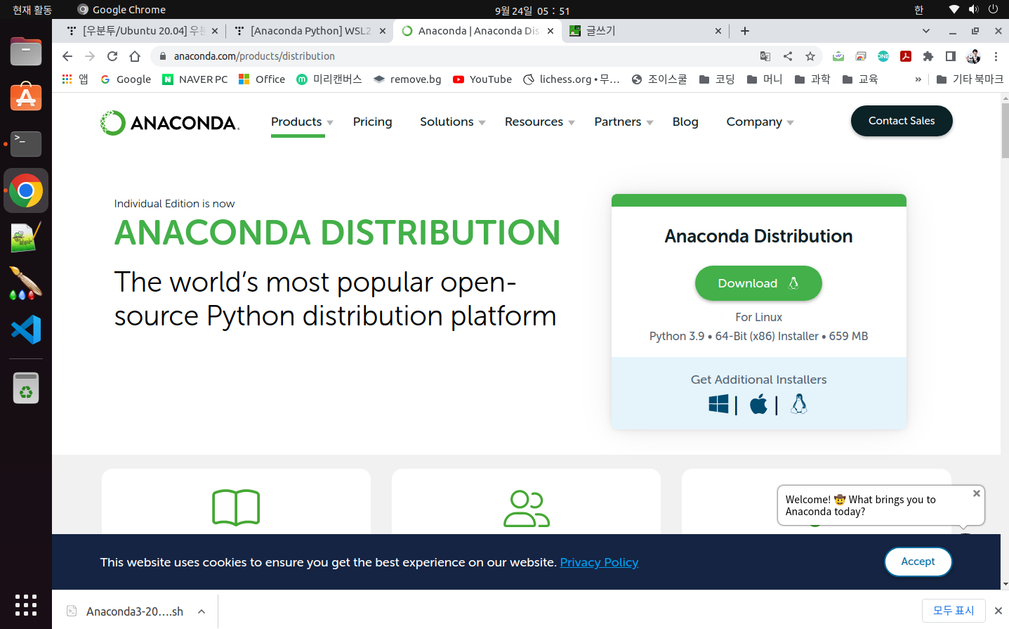GUI 환경에서 사용하기 위해 이제 아나콘다 네이게이터 설치 시작
