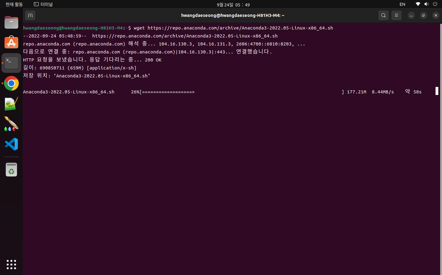 sh 명령어 뒤에 앞에서 복사한 링크에서 파일명만 남김