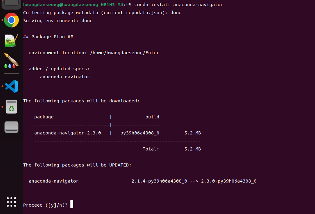 GUI 환경에서 사용하기 위해 이제 아나콘다 네이게이터 설치 시작