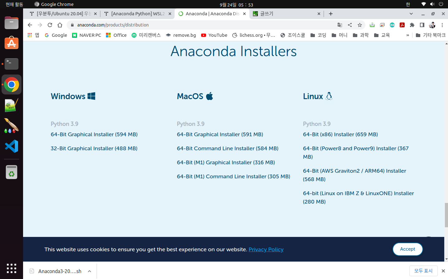 우분투에 설치할거니까 리눅스에서 64-Bit(x86) Installer 링크를 복사
