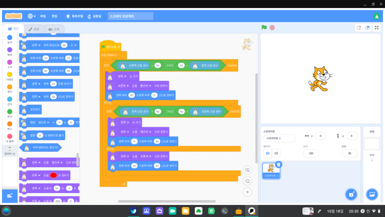 스크래치에서 센서값을 읽어볼게요.