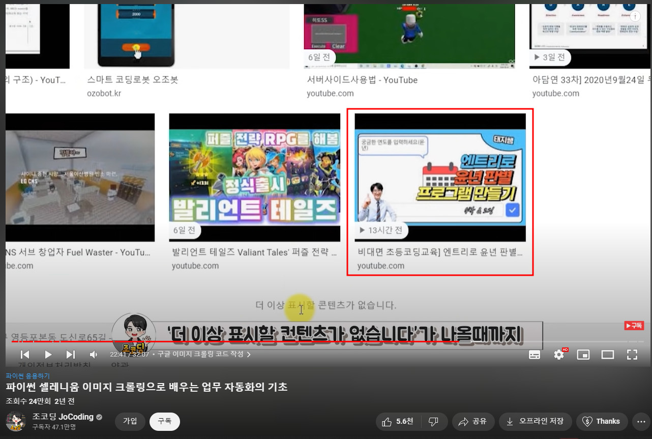 파이썬 관련 조코딩님의 유튜브 영상을 보다가