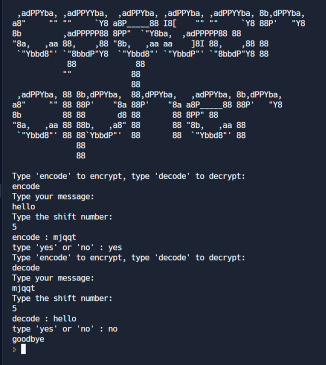 direction = input("Type 'encode' to encrypt, type 'decode' to decrypt:\n")