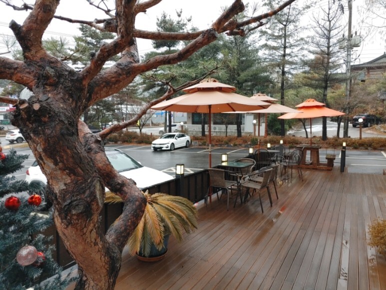 식당 앞 테이블에서 커피한잔하기 좋았어요.