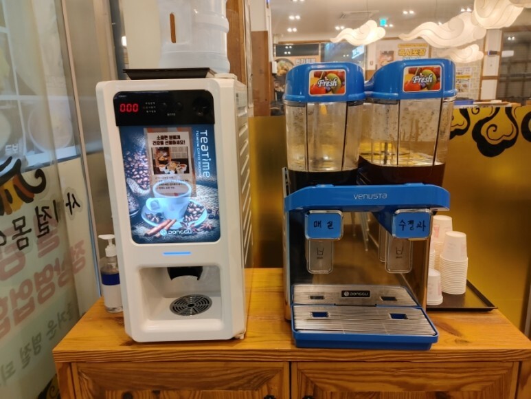 수정과와 매실이 준비되어있어요.