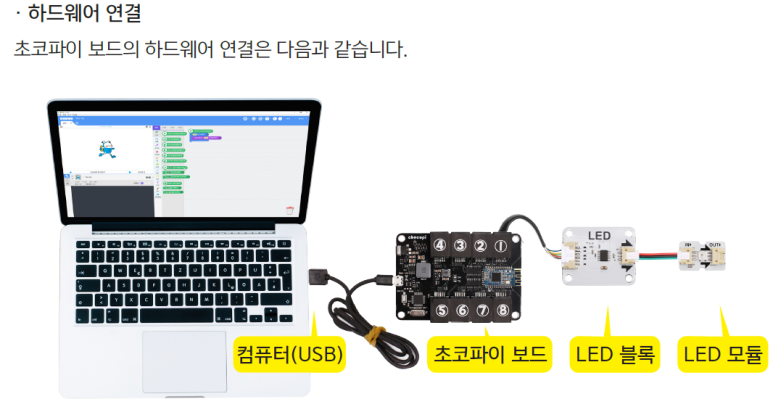 초코파이보드는 다음과 같이 연결해요.
