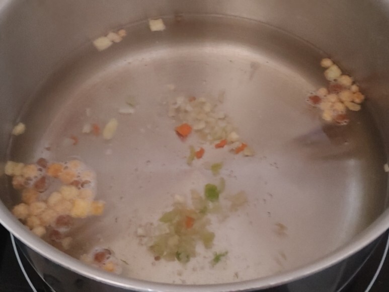 끊는 물에 건더기 스프를 넣구요.